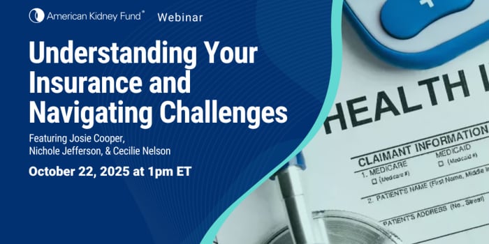 During this webinar, you will learn more about common insurance terms and barriers to receiving treatment coverage while living with chronic kidney disease. You'll also hear from two AKF ambassadors and learn about how they navigated insurance challenges.